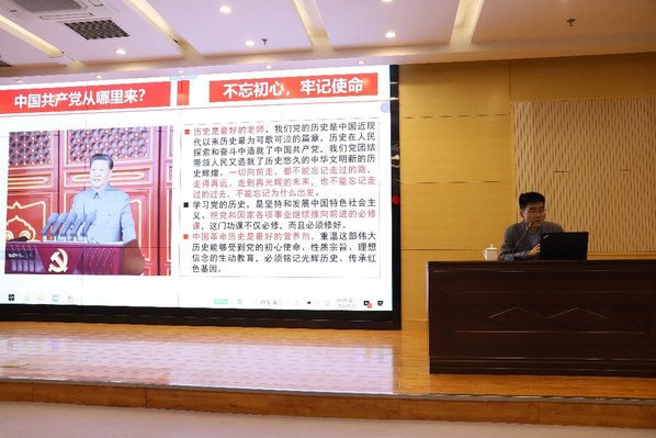 王洋老师做专题党课“中国共产党从哪里来”,从“横空出世”“步履维艰”“绝处逢生”“挫败连连”“死里逃生”“大道之行”六个维度解析了新民主主义时期中国共产党的诞生历程,希望同学们坚持真理、坚守理想、践行初心、担当使命,扎实学习党的历史,修好党史学习这场将党和国家各项事业继续推向前进的必修课。