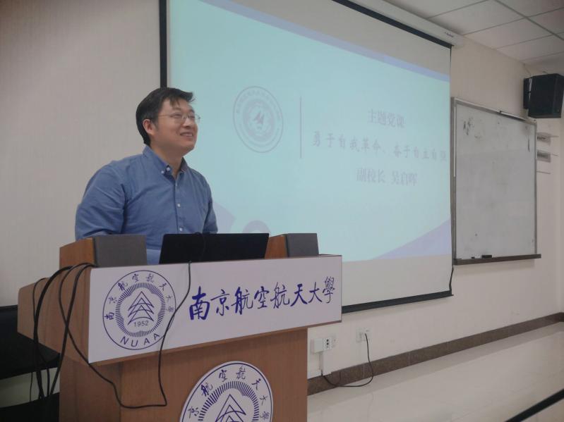 吴启晖副校长对104团支部过去一年取得的进步表示赞扬,并为同学们讲授了《勇于自我革命,奋于自立自强》的主题党课。面对同学们提出“内卷现象”的问题,吴校长发表了自己的看法。他认为,步入新时代,躺平只是伪命题,自我革命,在失败中成长,不断学习,取长补短才是更多年轻人的选择。他对支部成员提出殷切期望,面对国内部分领域的“卡脖子、卡嗓子”现状,希望青年一代更要自立自强,培养浓厚兴趣,树立更高目标。希望支部成员能够再接再厉,以更加优异的成绩,真正做到“聚是一团火,散是满天星”!