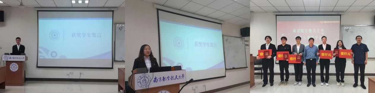 为发挥榜样力量,激励同学们进一步投入到勤奋的学习当中,吴启晖副校长为104支部成绩进步最显著的七名学生颁发“南京航空航天大学探索认知奖学金”证书。向星宇、徐国斌、肖映立、高放、张前作为获奖代表,与同学们分享了学习感悟与心得。他们在过去一年中走出了学习误区,逐渐为学习建立了良好的反馈机制,在与同学交流、为同学解惑的过程中不断收获成长,也为自己树立了明确的学习目标,希望用自己的经验鼓舞更多同学矢志奋斗,不负青春。