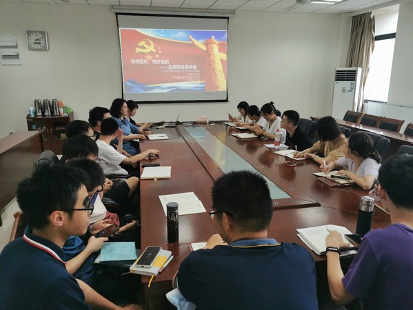 为迎接中国共产党建党101周年、纪念中国共产主义青年团建团100周年,2022年6月29日下午,污污漫画 机关党支部与电气学科研究生第三党支部开展主题党日活动,共同探讨“我为什么要加入中国共产党“。学院机关党支部书记王俊彦、电气学科研究生第三党支部书记何静,以及两个支部党员参加活动。