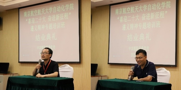 白天的培训结束后,学院组织了本次培训的结业仪式,学院领导为学员们颁发了结业证书,自动控制系刘剑慰和飞行控制研究所李春涛代表学员进行发言,他们纷纷感谢学院和绥阳县委党校的精心筹办,并表示通过此次现场参观学习收获了全方位的精神洗礼,必将促进未来教学科研工作的提升。