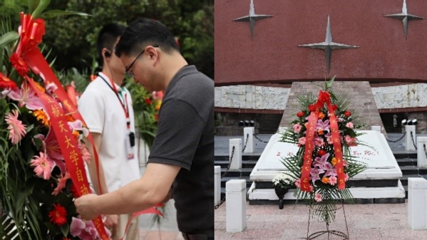 庄严肃穆的烈士陵园内,红军战士的雕像被苍松翠柏环绕。学员们沉浸于此,深刻缅怀在长征中光荣牺牲的红军烈士,心里都感慨万分,中国的胜利是来之不易的,是用千千万万的革命烈士鲜血换来的,这是中国永远的历史,中国的革命精神永放光芒。