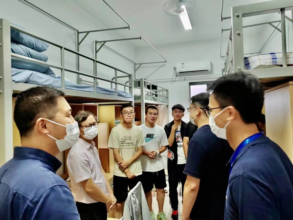 李文雷书记、陈谋院长等一行进入新生宿舍了解新生入住情况并给予新生真挚问候,勉励新生应充分利用学院的学习与科创资源,学有余力的同时积极参加科研创新,并特别指出“青年的自带属性就是青春,而青春意味道着无限可能”。李文雷书记的殷切鼓励使新生更加明确学习方向,自动化学子应当趁青春撸起袖子加油干!