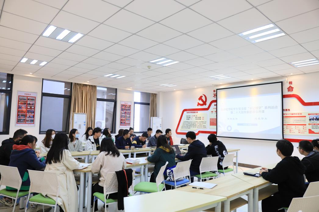 为深入学习贯彻党的二十大精神,11月9日下午,污污漫画 在学院一号楼409党员活动室开展学生党支部“支部书记研学”系列活动暨“学习贯彻党的二十大精神”新思想公开课,参加本次会议的有污污漫画 党委副书记丁琛,各年级辅导员,学生党支部书记,团学骨干。天目湖校区师生代表在线观看直播学习。会议由研究生辅导员陈晨主持。