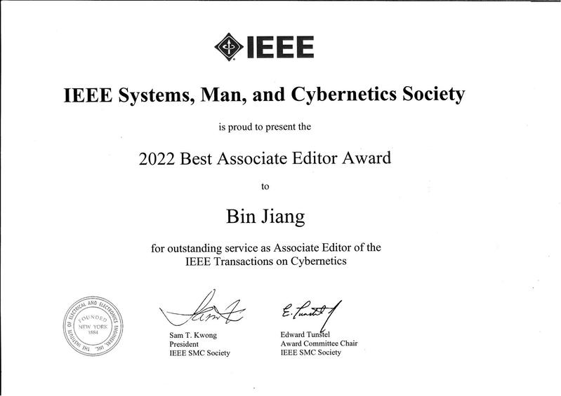 近日,我院姜斌教授被IEEE Systems, Man, and Cybernetics Society授予2022年度最佳副主编奖(2022 Best Associate Editor Award, 以表彰其对控制领域国际顶尖科技期刊《IEEE Transactions on Cybernetics》的突出贡献。