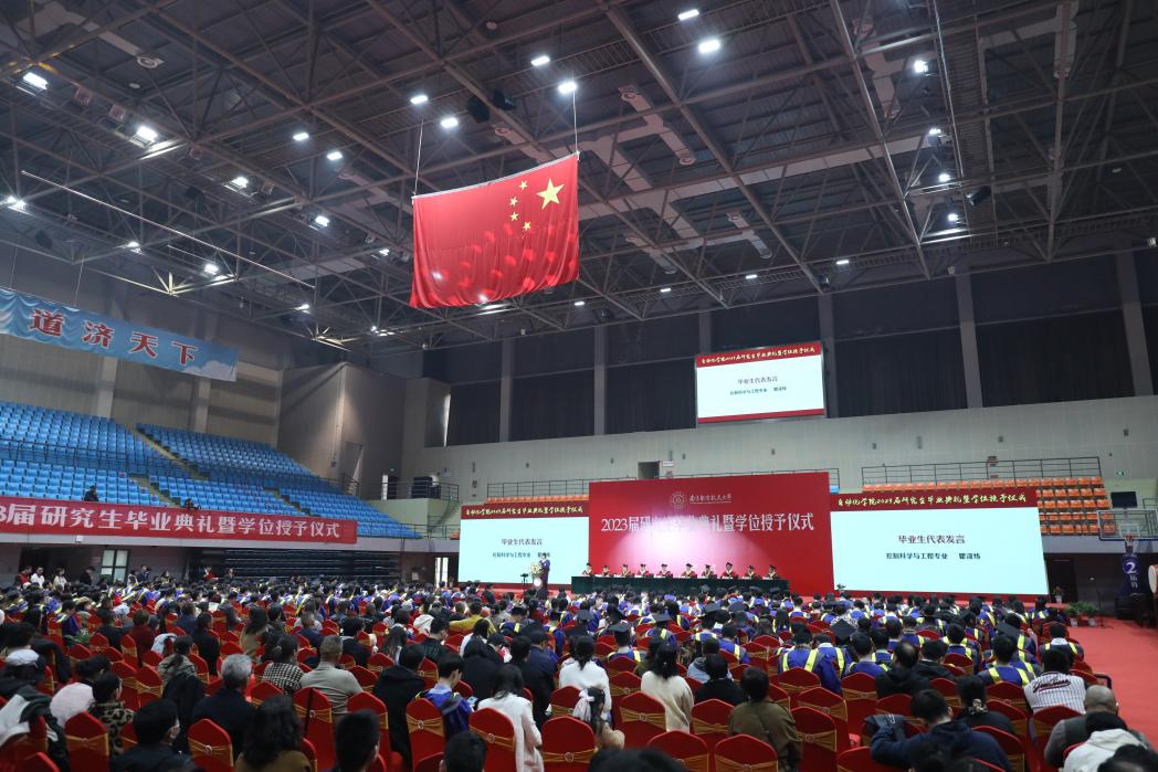 生物医学工程系钱志余教授作为教师代表发言,勉励毕业生常怀包容感恩之心,坚持勤奋学习,努力工作,不畏挑战,勇敢面对困难和未来。控制科学与工程专业瞿潇炜同学代表毕业生分享了自己的成长感悟,表达了对母校、老师和家长辛勤培育的感恩之情,表示将会继续传承报国使命,为中华民族伟大复兴贡献自己的青春、智慧和力量。教师代表、辅导员代表、学生代表为大家带来诗朗诵《感恩相遇,不负韶华》,回顾了永远难忘的师生情、同学情和三年青春年华。