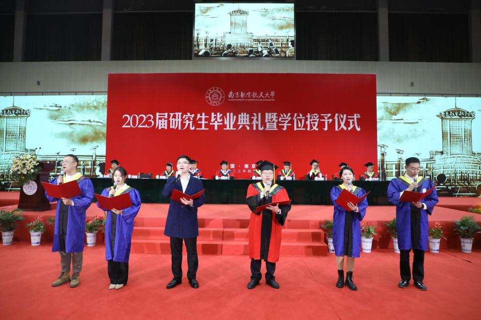 陈谋代表学院寄语毕业生,并为10名学院校友大使颁发聘书。他首先向全体毕业生表示热烈的祝贺,对一路辛勤付出的老师们和家长们表示诚挚的感谢。他指出,2023届同学们在南航求学的两年半时光里,秉承着志在超越,奋勇向前南航精神品格,不断成长进步,勉励大家坚持做一个理想远大、信念坚定,崇德明理、勇担重任的新时代青年,把人生理想融入国家和民族的事业中,为国家做出贡献。