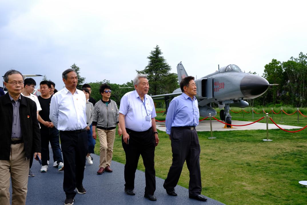 座谈会结束后,退休教师代表和青年师生代表参观了“御风园”航空航天教育教学实践基地。老前辈们面对承载着他们的心血与汗水的科研成果,不禁感慨万千,主动介绍起飞行器背后不为人知的故事。同学们认真跟随老前辈们见证着南航人航空报国,贡献国防的奋斗足迹,体会在他们身上承载的祖国至上,甘于奉献的家国情怀。