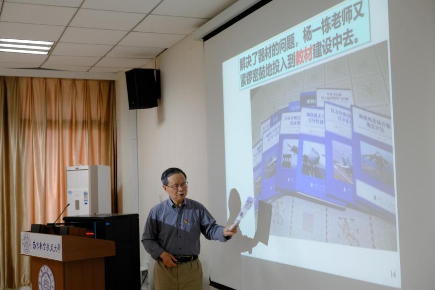 离退休党工委退休第三党支部书记潘双来教授介绍支部情况,他表示,虽然拥有“老党员”、“老教师”、“老校友”等多重身份,但是仍然初心不变,几十年如一日,始终保持终身学习的理念,积极学习习近平新时代中国特色社会主义思想,以学铸魂,以学增智,以学正风,以学促干。他引用建院元老杨一栋教授事迹,向青年学子们展示了老一辈自动化人如何怀揣航空报国的梦想,扎根一线基层,励志奋斗,为党育英才,为国铸重器。最后潘双来深情勉励道:新时代的中国青年要以实现中华民族伟大复兴为己任,增强做中国人的志气、骨气、底气,不负时代,不负韶华,不负党和人民的殷切希望。