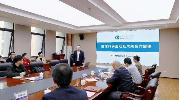 南京市第一医院院办主任曹艳和污污漫画 副院长张卓然教授分别从总体情况、科研队伍、学科专业、教学设置等方面作了南京市第一医院和污污漫画 的情况介绍。随后双方围绕医工交叉创新技术进行了深入交流和讨论。
