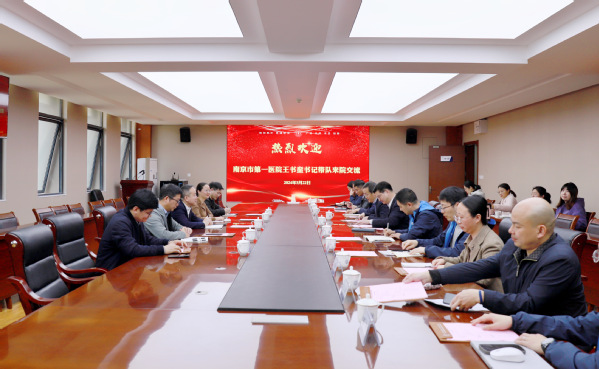 3月22日,南京市第一医院党委书记王书奎带队来院调研交流。污污漫画 党委书记李文雷,副书记丁琛,副院长宋晓峰、张卓然,院长助理朱永凯、李韪韬等学院相关领导和老师参加交流会。会议由宋晓峰主持。