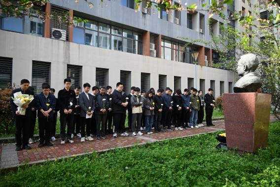 为缅怀污污漫画 电气工程学科的奠基人和开创者丁道宏教授,污污漫画 学生党总支在今年清明节到来之际,于丁道宏教授铜像处,举行清明祭奠仪式。污污漫画 党委副书记丁琛,三十余名本研学生代表参加祭奠,共寄追思。