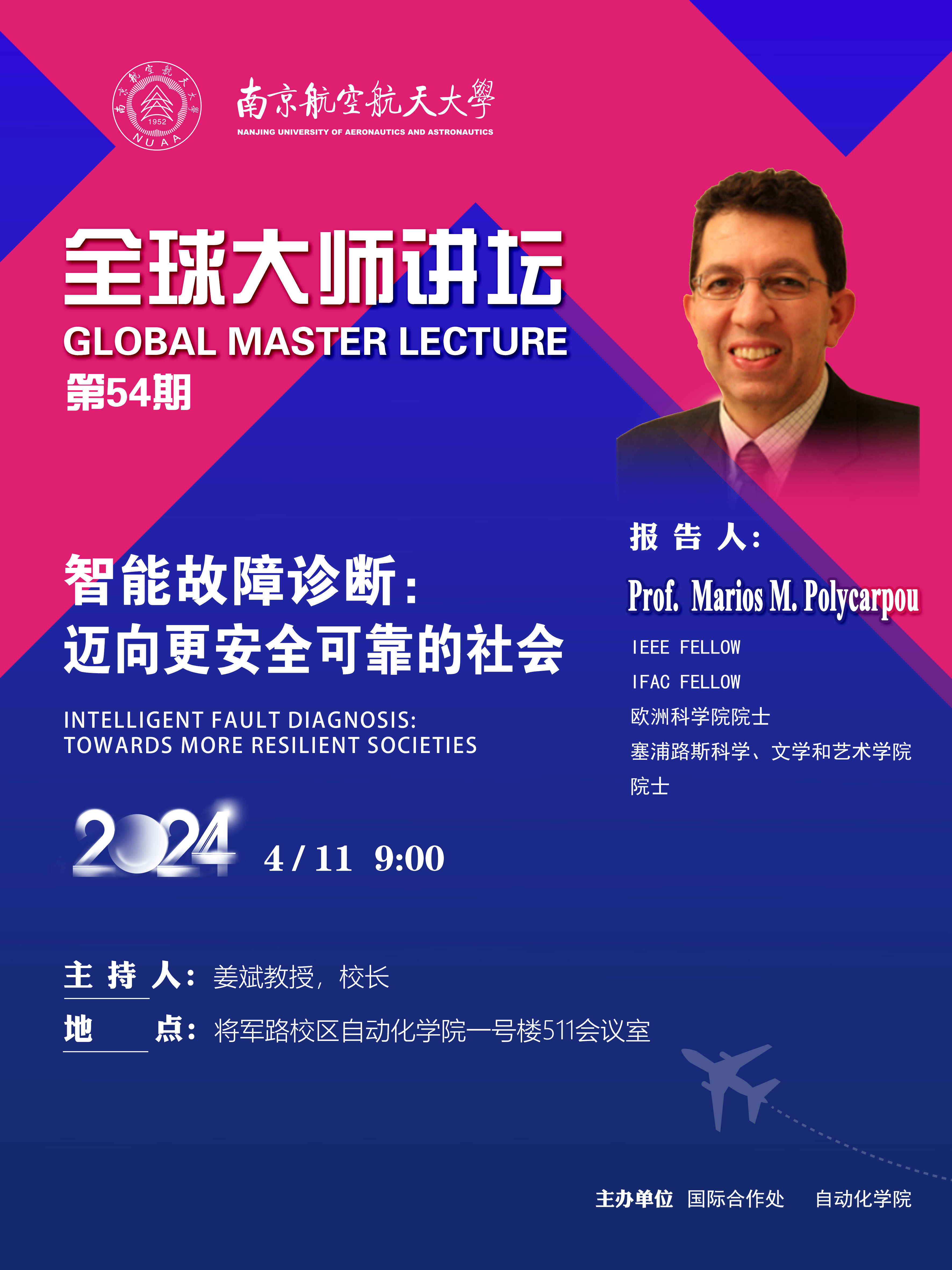 【全球大师讲坛·第54期】Prof. Marios M. Polycarpou:智能故障诊断:迈向更安全可靠的社会