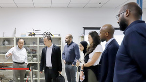 4月18日,阿联酋阿布扎比技术创新研究院(Technology Innovation Institute, Abu Dhabi, UAE)首席研究员Zhaohui Cen带领团队成员Amanda、Younes Al-Younes、Zahi Mohamed Osman Mohamed、Francisco Bilendo、Maryam Alshehhi一行6人回访我院。污污漫画 院长陈谋,自动控制系、电气工程系、测试工程系主要负责人参加。