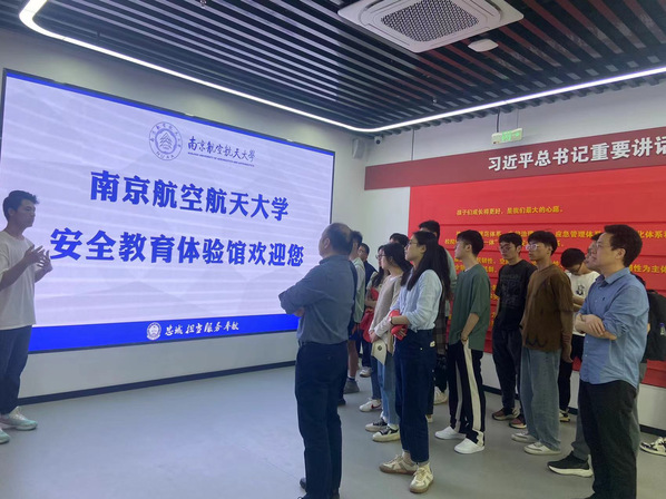 南京航空航天大学安全教育体验馆位于占地面积近1000平方米,由序厅、国家安全厅、消防安全厅、实验室安全厅、公共安全厅、尾厅组成。体验馆以总体国家安全观为指导,以“大安全”理念文化建设为核心,以互动体验为特色,展现了国家安全、保密安全、消防安全、实验室安全、防范电信网络诈骗、公共卫生、禁毒宣教、反恐防暴、交通安全等教育内容,内容涵盖了师生日常生活中常见的安全知识要点。
