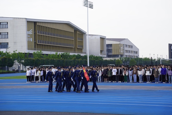 7点整,升国旗仪式正式开始。天目湖校区国旗护卫队迈着整齐划一、铿锵有力的步伐,护送着五星红旗正步走向旗杆。伴随着激昂的《义勇军进行曲》,23级全体师生注视着五星红旗冉冉升起,在熠熠晨光中迎风飘扬。