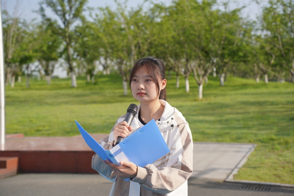 2023级本科生团总支书记、0323501班吉枫林同学作劳动教育主题国旗下发言。她结合自己身边的生动实例阐述了崇尚劳动、尊重劳动、热爱劳动的重要性,号召同学们积极传承和发扬劳模精神,以更加饱满的热情和坚定的信念,投身于劳动教育的伟大实践中去,实现自我价值和社会价值的统一。