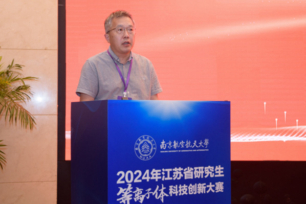 7月7日,2024年江苏省研究生等离子体科技创新大赛在南京成功举行,大赛主办单位为江苏省工学2类研究生教育指导委员会,承办单位为南京航空航天大学承办,协办单位为南京工业大学、河海大学、南京理工大学、苏曼等离子科技有限公司,指导单位为中国电工技术学会等离子体及应用专委会、中国电工技术学会青年工作委员会、江苏省真空学会等离子体专委会、江苏省电源学会、江苏省电机工程学会高压专委会。南京航空航天大学党委副书记陶勇,江苏省工学2类研究生教育指导委员会主任委员、南京邮电大学党委副书记蒋国平,中国电工技术学会组织人事部主任王振涛、江苏省工学2类研究生教育指导委员会秘书长刘芫健、江苏省工学2类研究生教育指导委员会委员江驹、中国科学院电工研究所研究员邵涛、南京工业大学电气工程与控制科学学院院长方志、南京航空航天大学研究生院院长陈兵、南京航空航天大学污污漫画 党委书记李文雷、南京航空航天大学污污漫画 院长陈谋、南京航空航天大学污污漫画 党委副书记丁琛、南京航空航天大学污污漫画 副院长宋晓峰等领导和嘉宾出席活动,来自江苏省内外十余所高校的64支队伍参加比赛。