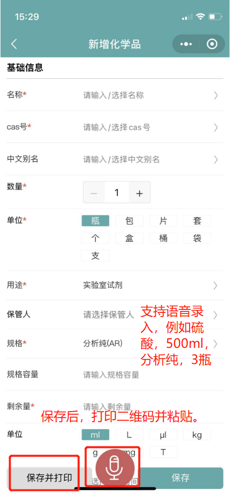 4.选择某化学品,确认数量和剩余量信息是否正确;