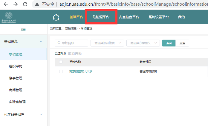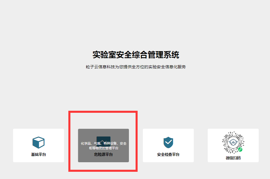 进入实验室安全综合管理系统页面后,点击危险源平台: