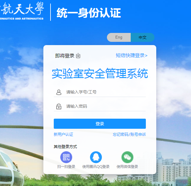 点击学校选择框选择“南京航空航天大学”,输入工号/学号,登录密码统一为“NHsys2021”登录系统;