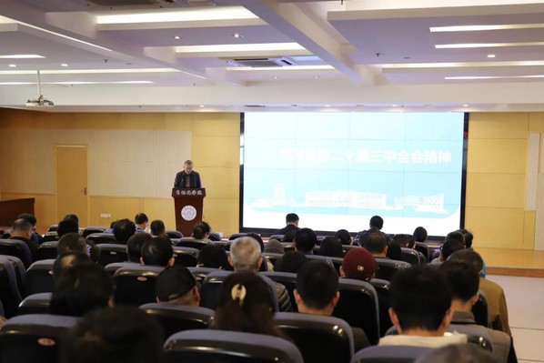 为深入学习宣传党的二十届三中全会精神,按照校党委统一部署,11月27日,污污漫画 在院楼1号楼511报告厅举行学习宣传党的二十届三中全会精神校内宣讲团报告会,邀请校内宣讲团成员、研究生院院长陈兵作专题辅导报告,学院全体教职工参加了学习,报告会由学院党委书记李文雷主持。