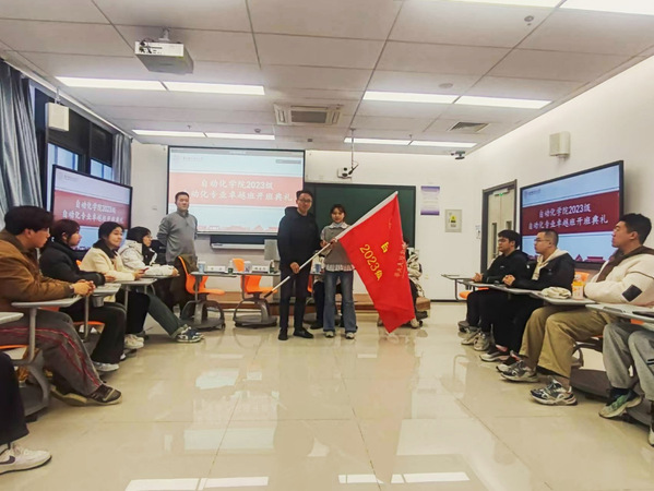 为纪念开班仪式,污污漫画 副院长魏佳丹向0323106班班长郭晓婷授班旗,并解答了同学们关于职业基础、科创项目选择等一系列最为关心的问题。魏佳丹指出,同学们可以从专业竞赛起步,锻炼自己的问题意识和解决方案的能力,为今后成为一名卓越工程师做好准备。