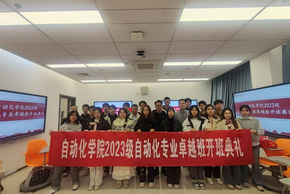 典礼伊始,魏佳丹率先发表讲话。他着重强调了106 “卓越班”的核心培养目标,即致力于培育工程领域的杰出英才。魏佳丹指出,在课程体系构建方面,特地为“卓越班”增设了实习实践环节,增加了相应学时,其目的在于助力同学们深度融入产业一线,精准把握行业发展的前沿动态,希望同学们能把握机会,继承自动化专业“卓越班”的优良传统,人人立志做大国工程师。
