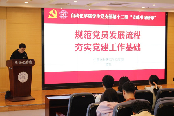 生医学科研究生党支部组织委员覃兵围绕《规范党员发展流程,夯实党建工作基础》主题进行领学。他结合支部工作实际详细介绍了学生党员发展的具体流程和注意事项,为污污漫画 2025年春季学生党员发展工作奠定扎实的基础。