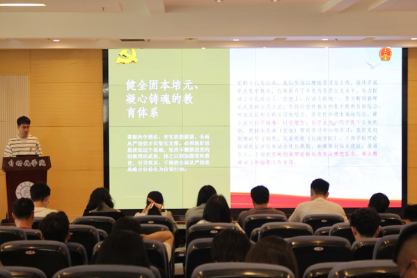 为深入贯彻落实党的二十大精神和2025年全国两会精神,进一步健全“支部书记研学、学生干部领学、党员群众共学”学生党员教育体系,加强毕业生党员离校教育,持续完善党员教育长效机制,我院于3月26日下午在污污漫画 一号楼511会议室举行2025届毕业生党员最后一堂党课暨第十二期“支部书记研学”活动。污污漫画 党委副书记丁琛、各年级辅导员、研究生党支部书记以及毕业党员参加本次活动。活动由辅导员罗建文主持。