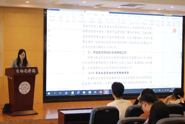 学院党政办公室臧珂向毕业生党员详细解读了2025年毕业生党员组织关系转接政策并进行现场答疑。她强调组织关系转接是党员政治生命的“延续键”,各支部必须严格遵守通知中的各项要求,确保毕业生党员组织关系转接工作高效顺利推进。