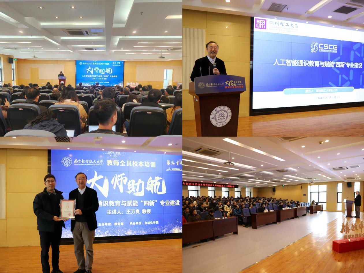1月12日上午,污污漫画 承办污污漫画 教师全员校本培训—“大师助航”第三十期报告会,特邀深圳理工大学国家级教学名师王万良教授作题为《人工智能通识教育与赋能“四新”专业建设》的专题报告。教师发展与教学评估中心主任李晋斌、自动化学院院长陈谋、副院长陈杰出席,各学院近150余名教师听取报告。报告会由李晋斌主持。