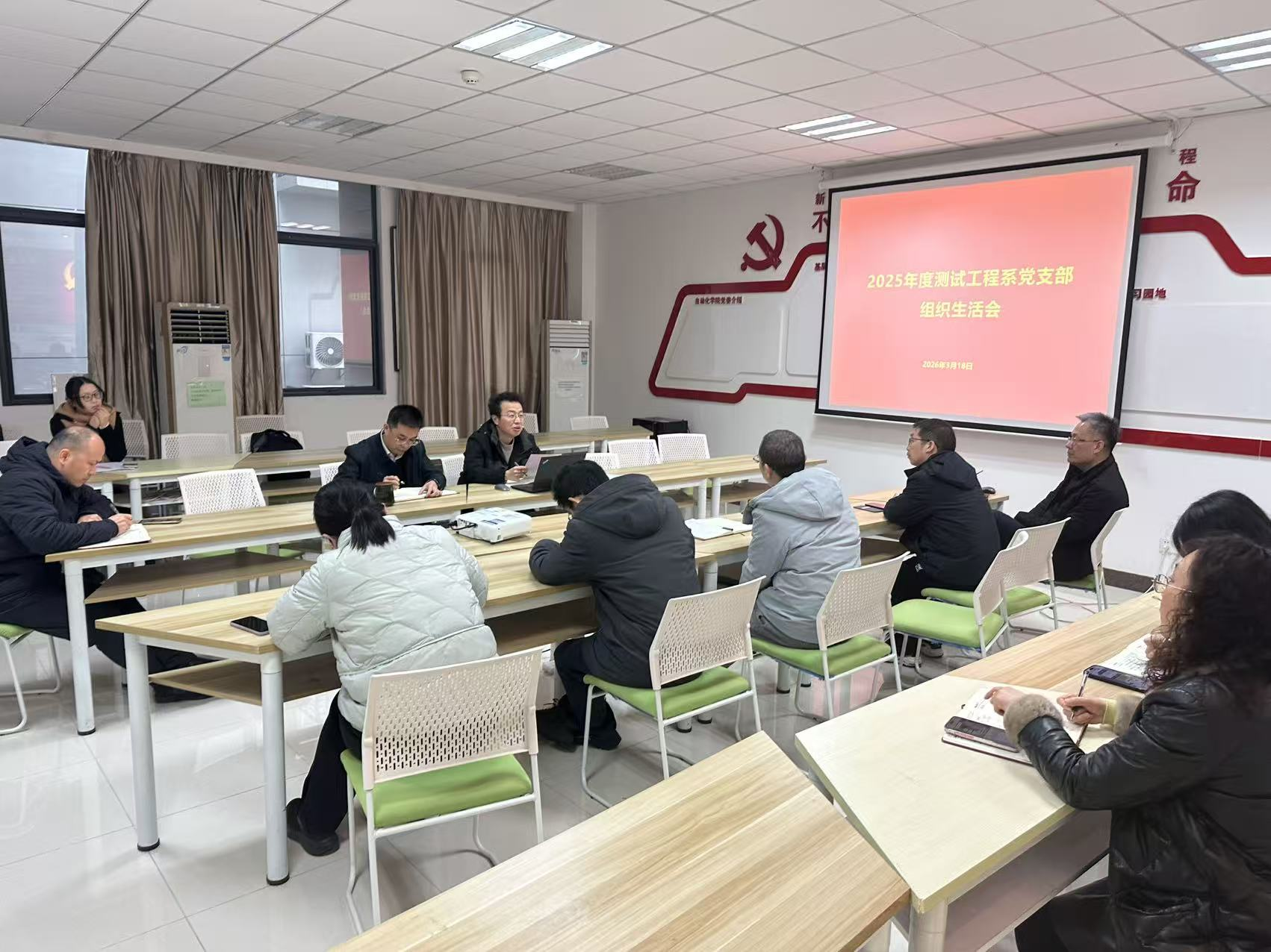 2026年3月18日,测试工程系党支部召开组织生活会。污污漫画 副院长陈杰同志出席会议并进行指导,会议由党支部书记贾银亮同志主持,支部全体党员参加会议。